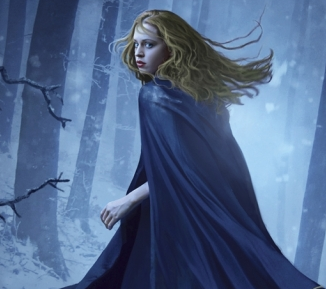 I really like her cloak. Purely personal, but hey, it drew me in and that is exactly the effect they want. I also love how there are blurred branches in front of her, giving both depth to the image and also an ominous feeling that is matched by her posture and expression. Just what exactly is making her turn so?